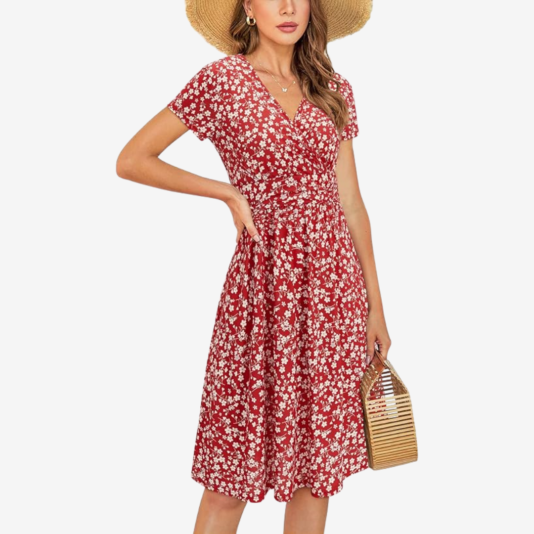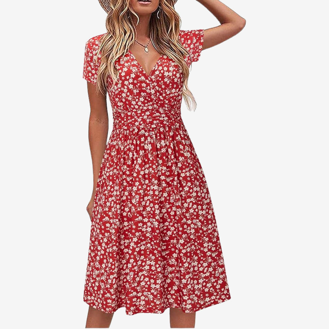 L'Alixane™ apporte une touche de charme naturel à votre garde-robe estivale. Avec son imprimé floral féminin, son décolleté en V fluide, ses manches courtes et ses poches latérales pratiques, cette robe légère offre l'équilibre parfait entre confort et style, pour vos sorties quotidiennes comme pour vos week-ends décontractés.