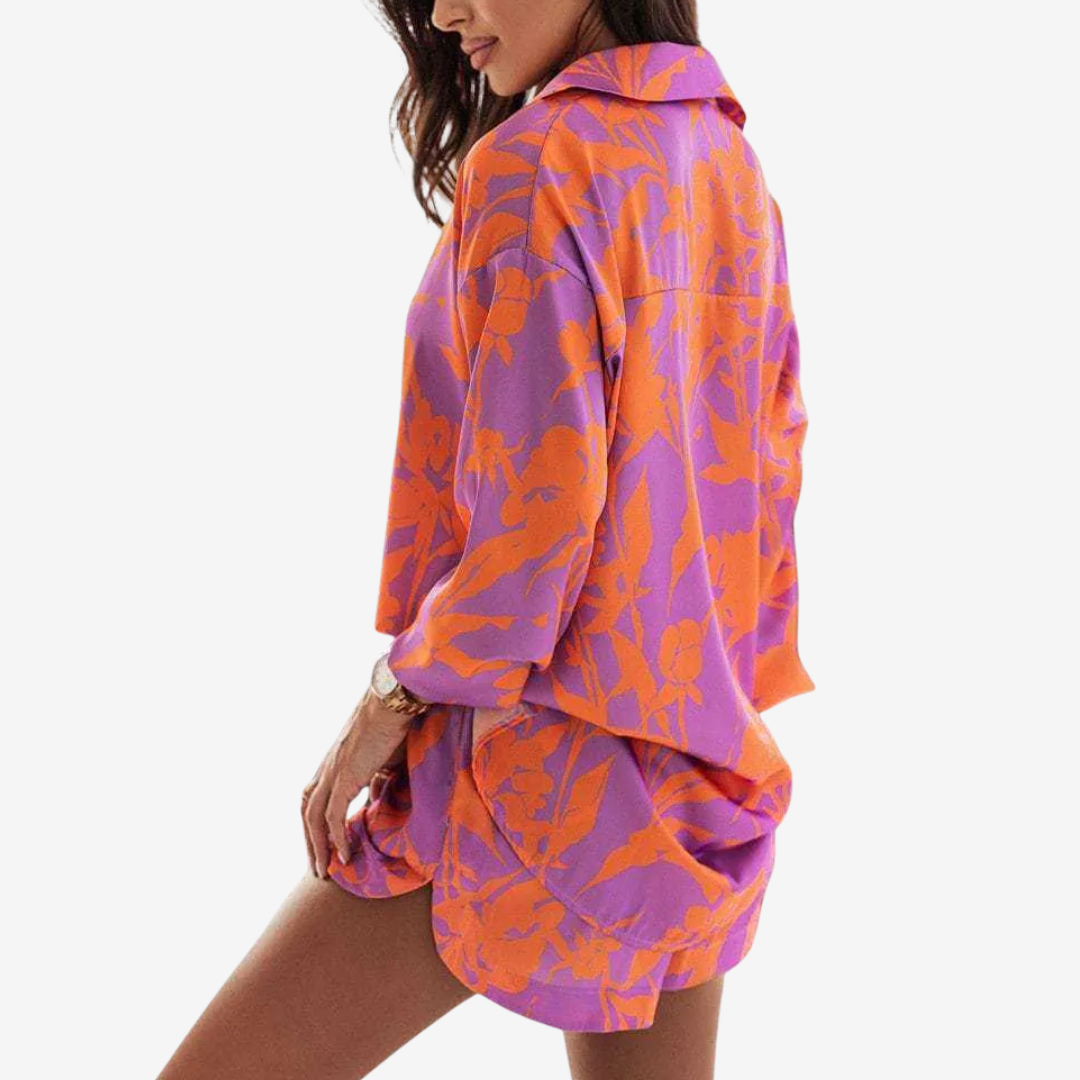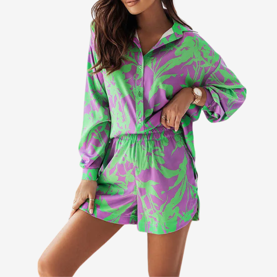 L'ensemble Beaira™ allie confort et style dynamique, idéal pour les journées ensoleillées et les looks décontractés chics. Composé d'une chemise ample à col flatteur et d'un short assorti, il est confectionné dans un tissu léger et respirant qui vous garde au frais tout en ajoutant une touche de couleur à votre garde-robe. Avec ses motifs audacieux et son design polyvalent, Beaira™ s'adapte parfaitement aux balades à la plage comme aux sorties en ville. Associez-le à des sandales pour une allure décontractée ou rehaussez-le avec des chaussures compensées et des accessoires pour un look tendance et ludique.
