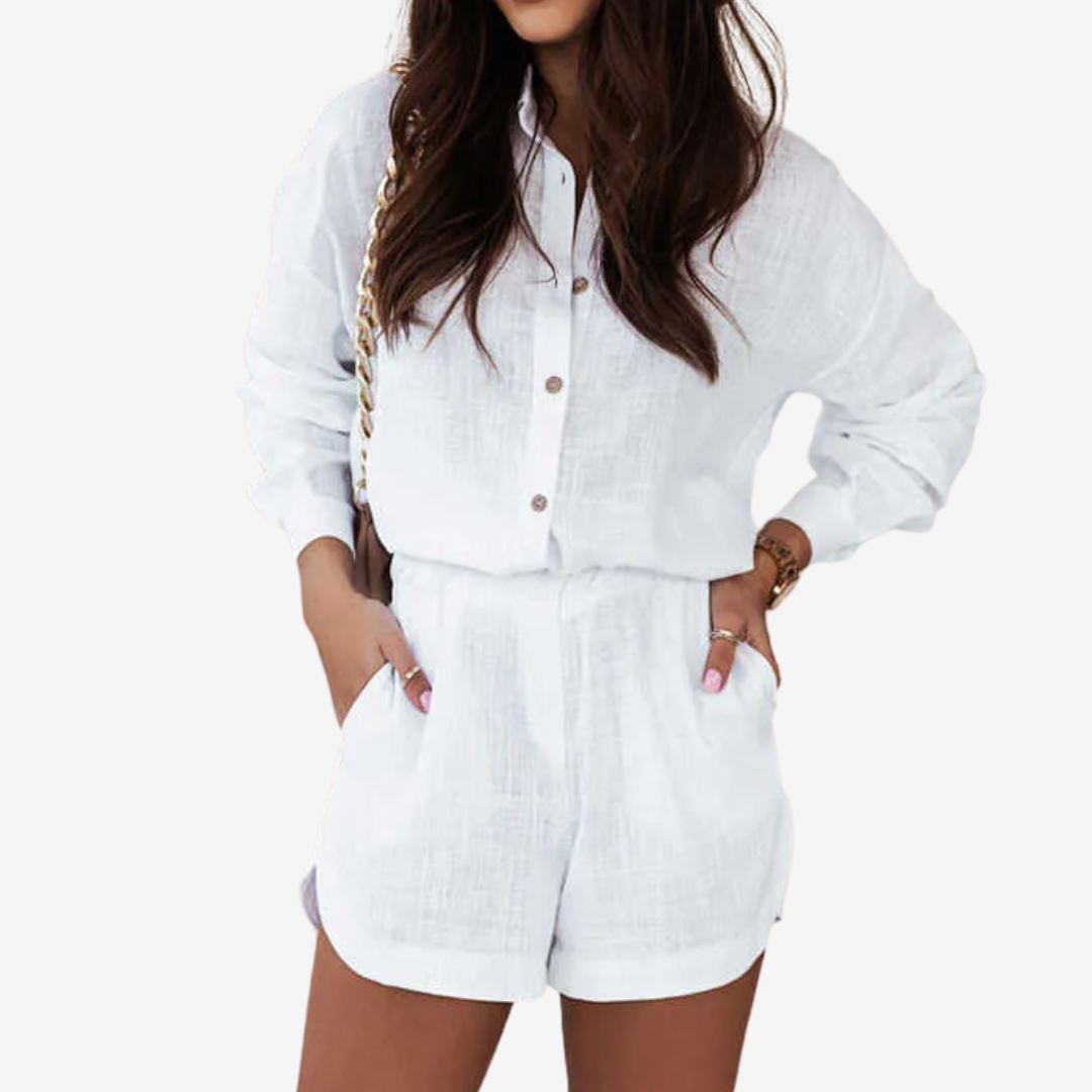• Combinaison chemise et short coupe décontractée pour une tenue polyvalente