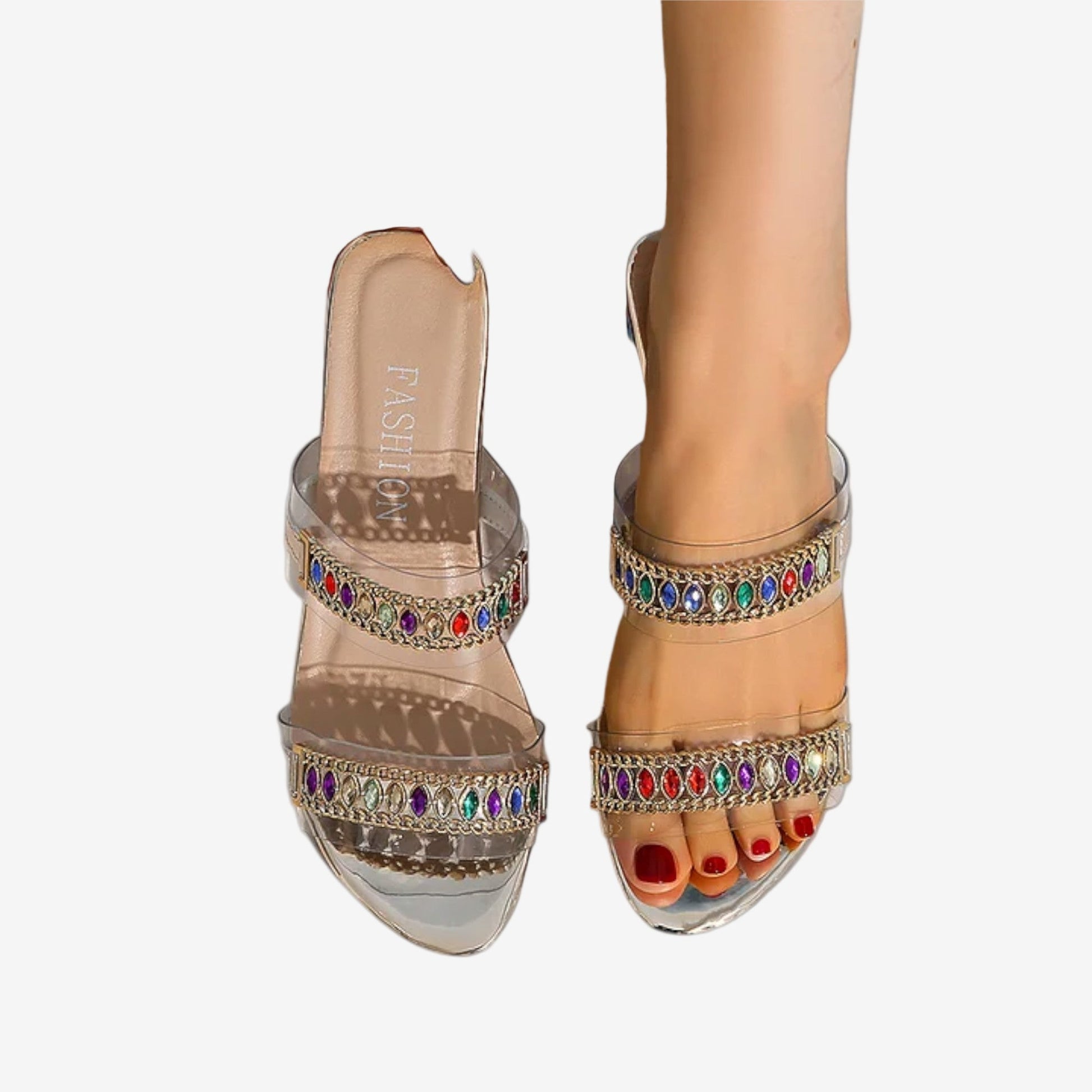 Talon bloc transparent moderne qui offre une élévation élégante et stable