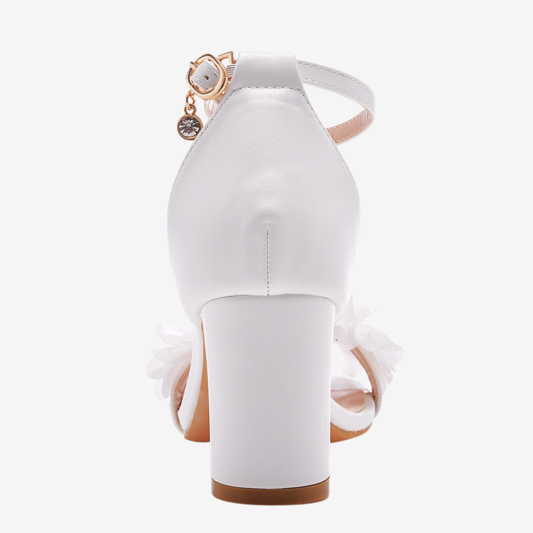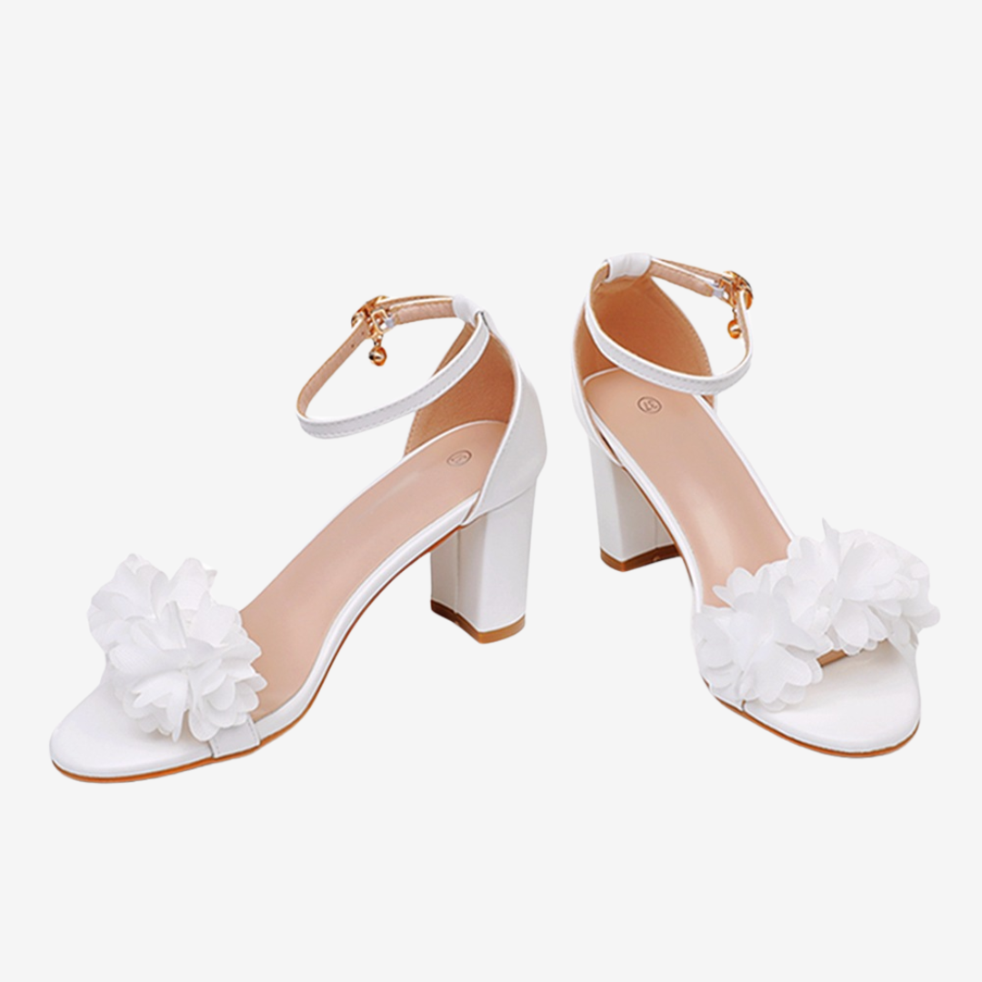 Les talons Énora™ allient élégance et confort. Ornés d'un délicat décor floral et d'une boucle ajustable à la cheville, ces sandales à bout ouvert apporteront une touche de féminité à toutes vos tenues. Leur teinte blanche leur confère fraîcheur et polyvalence, les rendant idéales pour les sorties décontractées comme pour les grandes occasions.