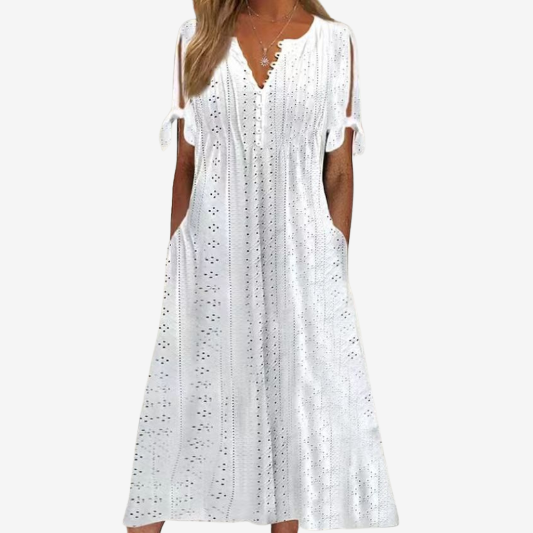 Adoptez l'élégance sans effort avec Liza™, la robe d'été bohème conçue pour le confort et le charme. Confectionnée dans une matière légère et délicatement brodée, cette robe fluide est parfaite pour les journées chaudes, les balades sur la plage ou les soirées décontractées. Son décolleté en V flatteur et sa coupe décontractée la rendent idéale pour toutes les morphologies, tandis que ses teintes pastel lui apportent une touche de douceur et de féminité. Facile à porter et polyvalente, Liza™ est un indispensable de la garde-robe de toutes les amoureuses de l'été.
